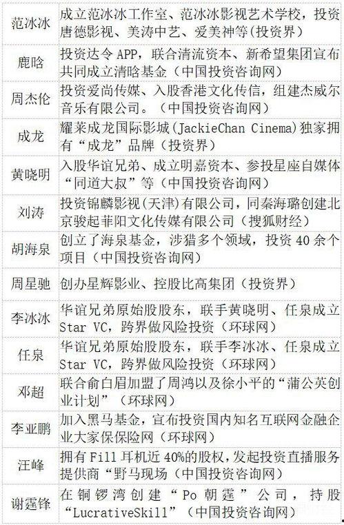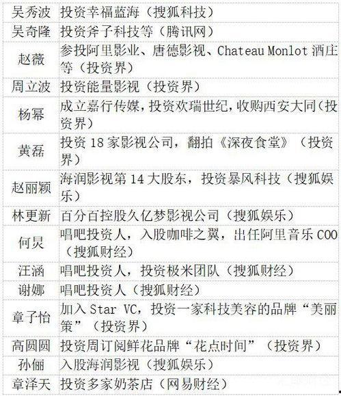 你知道吗?在娱乐圈这个大染缸里,明星们不仅要拼演技,还要拼资本运作。今天,就让我带你一探究竟,看看那些明星们是如何玩转资本的!